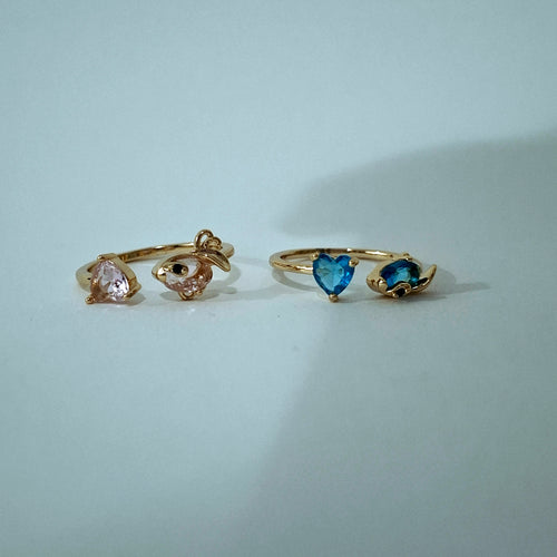 Anillo ajustable de pez y corazón encontrados con zirconia
